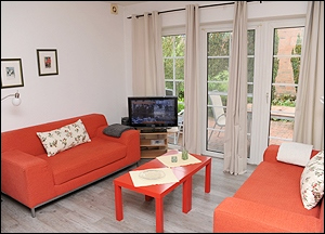 | Unsere komfortable Ferienwohnung für 1 - 3 Pers. (ca. 50 qm) befindet sich in ruhiger Lage im Schollenweg 10 nicht weit vom Ortskern entfernt. Die Wohnung besteht aus einem großen Wohnraum mit Essplatz, Kochnische, einem Schlafzimmer mit Doppel- , einem Schlafzimmer mit Einzelbett, Bad mit Dusche/WC. SAT-TV, Waschmaschine sind Teil der Ausstattung. Zwei Terrassen mit kleinem Garten, Gartenmöbel, Abstellraum mit zwei Fahrräder, PKW-Einstellplatz gehören zur Wohnung.